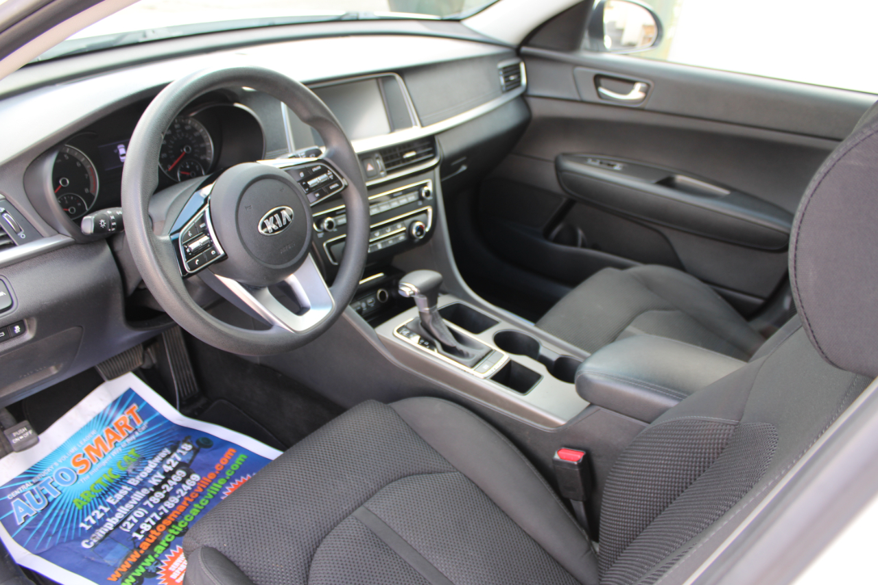 Snow White Pearl 2020 Kia Optima LX FE FWD 2.4L I4 DGI DOHC 6-Speed Automatic with Aluminum Wheels, Bluetooth, Backup Camera, Blind Spot Warning Assist, Forward Collision System, Lane Departure Warning System, Rear Parking Assist, Apple Car Play, Keyless Entry, Black Cloth, And MUCH MORE!